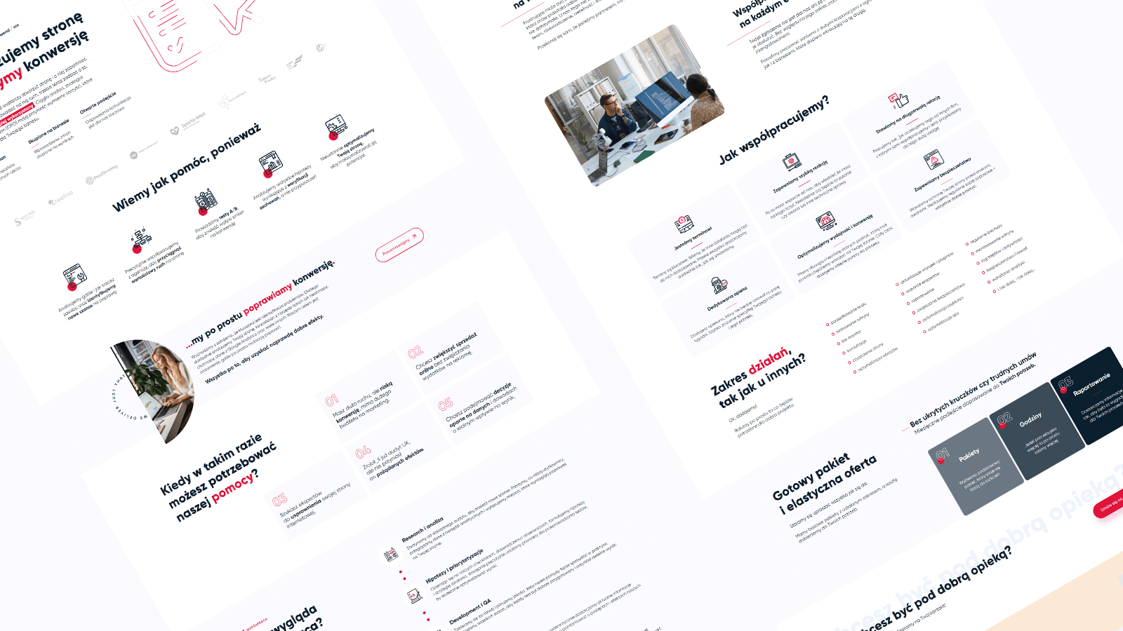Dopiero po zamknięciu tematu strony głównej, ruszyliśmy dalej. Nie kopiowaliśmy rozwiązań na ślepo. Każdy kolejny widok poprzedzony był przygotowaniem pełnej architektury informacji. Musieliśmy wiedzieć jak poprowadzić użytkownika? Co jest celem tej konkretnej podstrony?